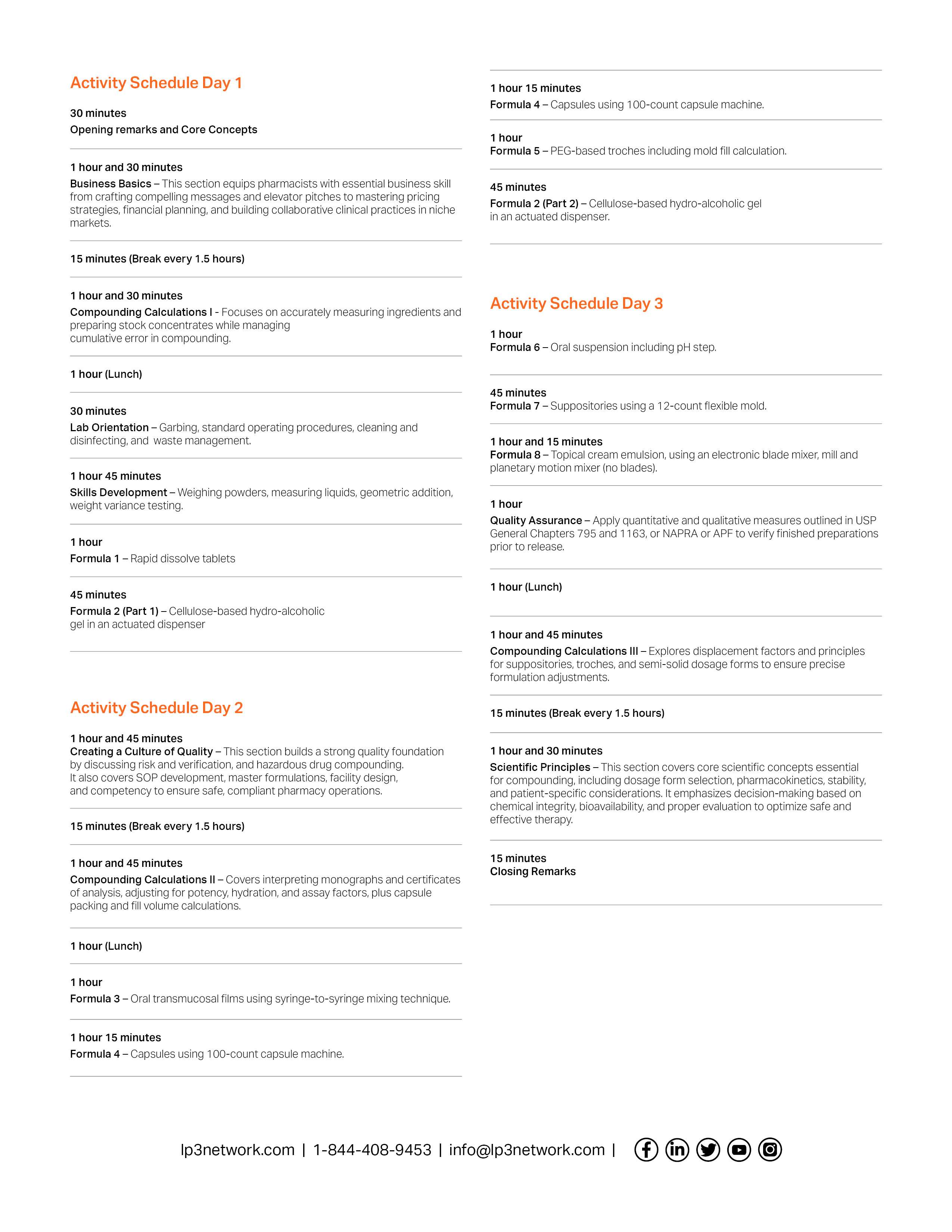 1.5-day live seminar (12 hours) that provides foundational training on non-sterile compounding - everything from business basics, to scientific principles such as dosage form stability and suitability, to performing pharmaceutical calculations, to implementing regulatory guidelines, standards of practice, SOPs, and much more.